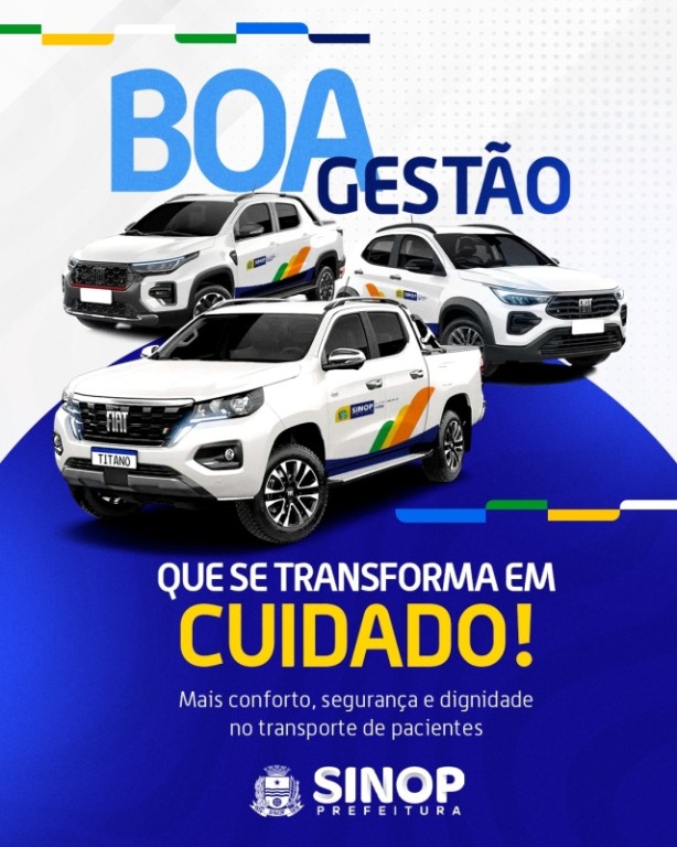 A Prefeitura de Sinop, através da Secretaria Municipal de Saúde, acaba de realizar a compra de cinco veículos para o transporte de pacientes. Essa iniciativa reafirma o compromisso da gestão com a humanização do atendimento e o uso consciente dos recursos públicos.